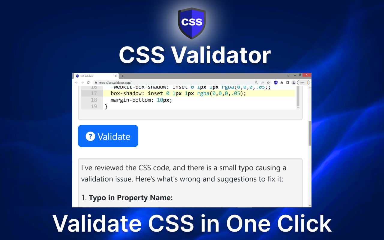 Tired of endless debugging? Validate CSS effortlessly with our tool, ensuring your stylesheets are flawless.